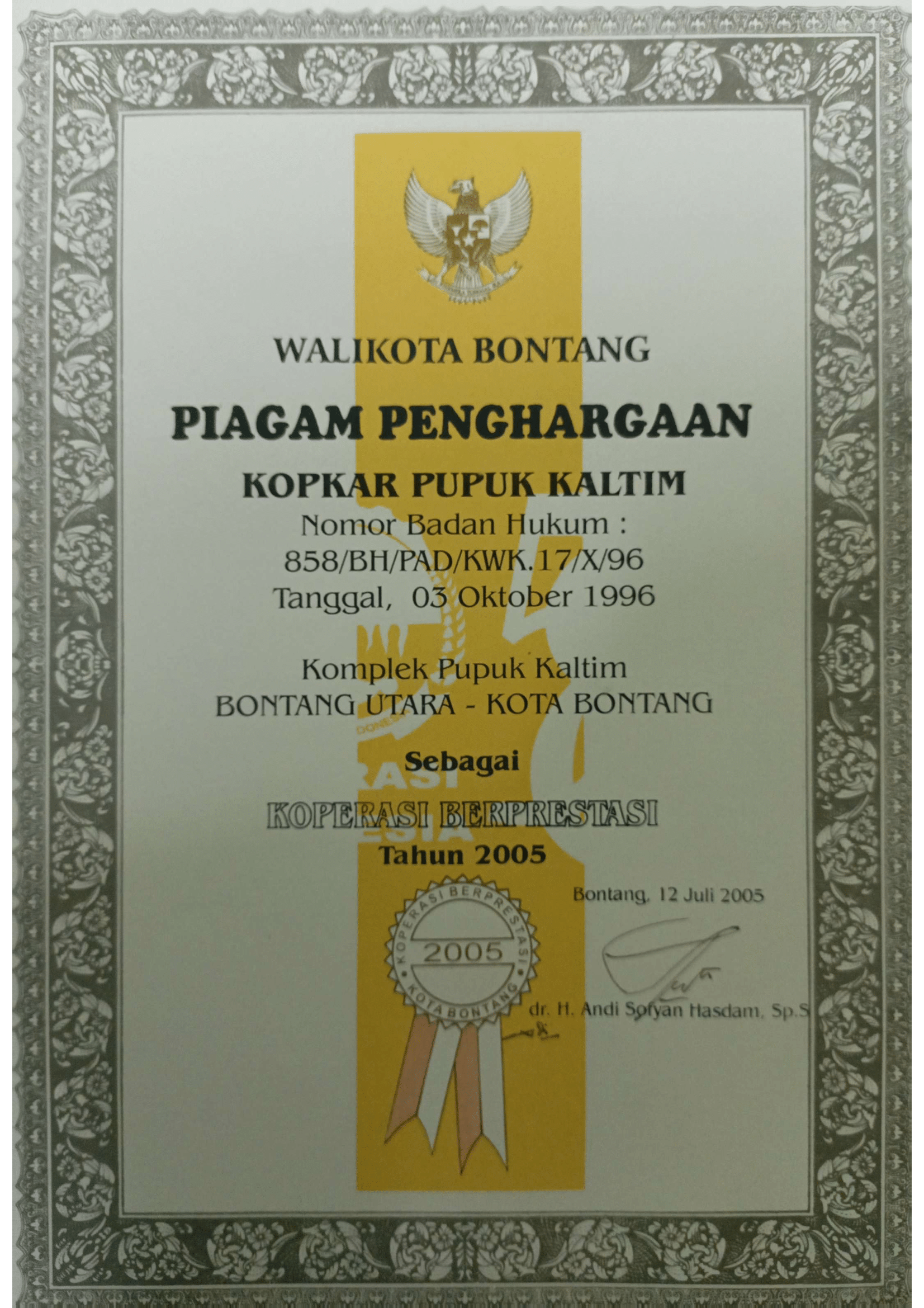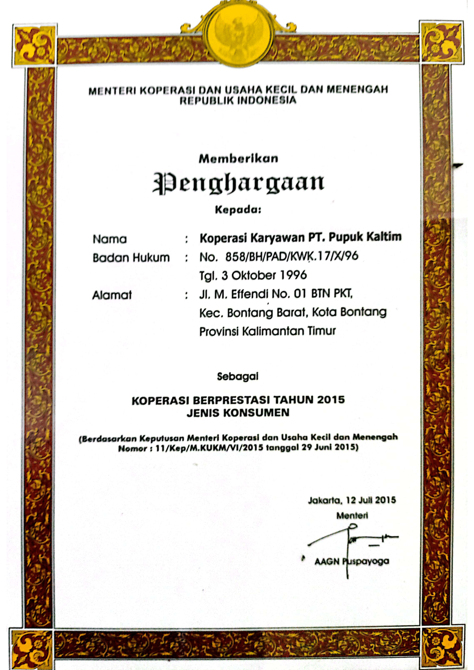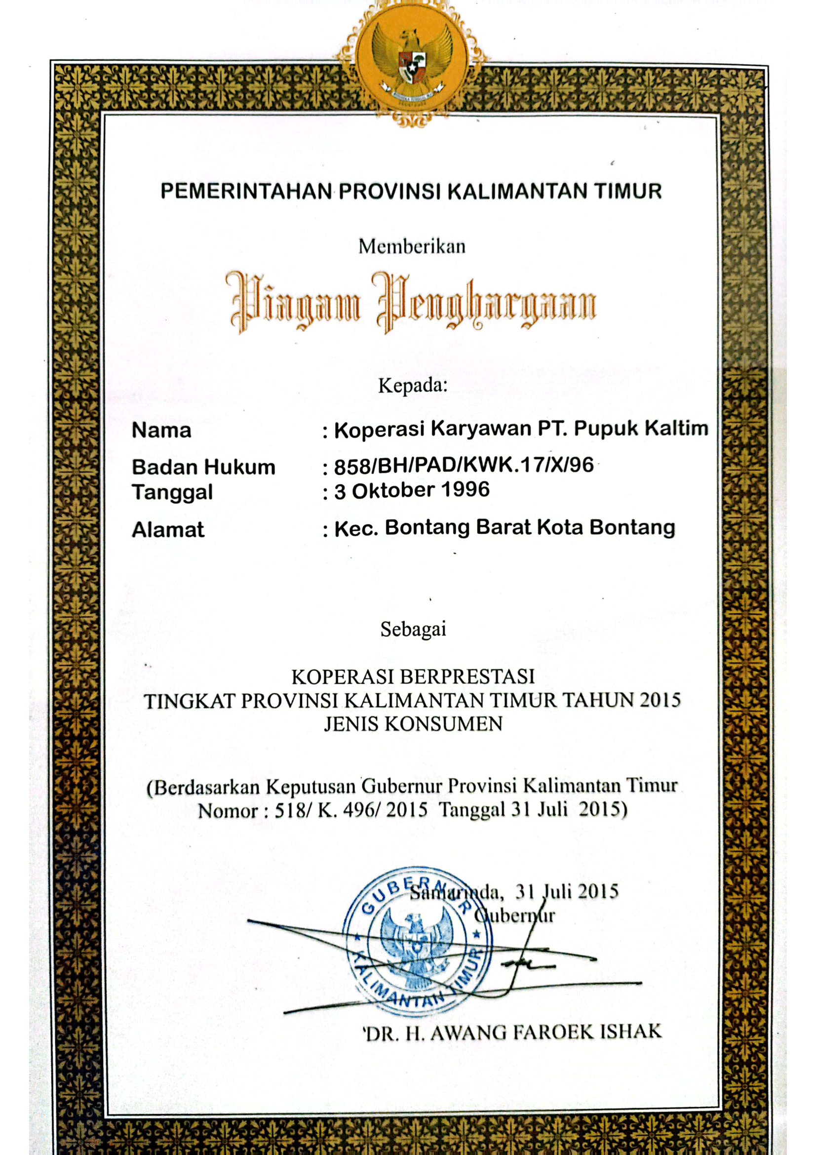 Sebagai salah satu wadah penggerak ekonomi diIndonesia, khususnya di lingkungan PT. Pupuk Kalimantan Timur serta masyarakat KotaBontang pada umumnya dari tahun 1985 hingga saat ini.